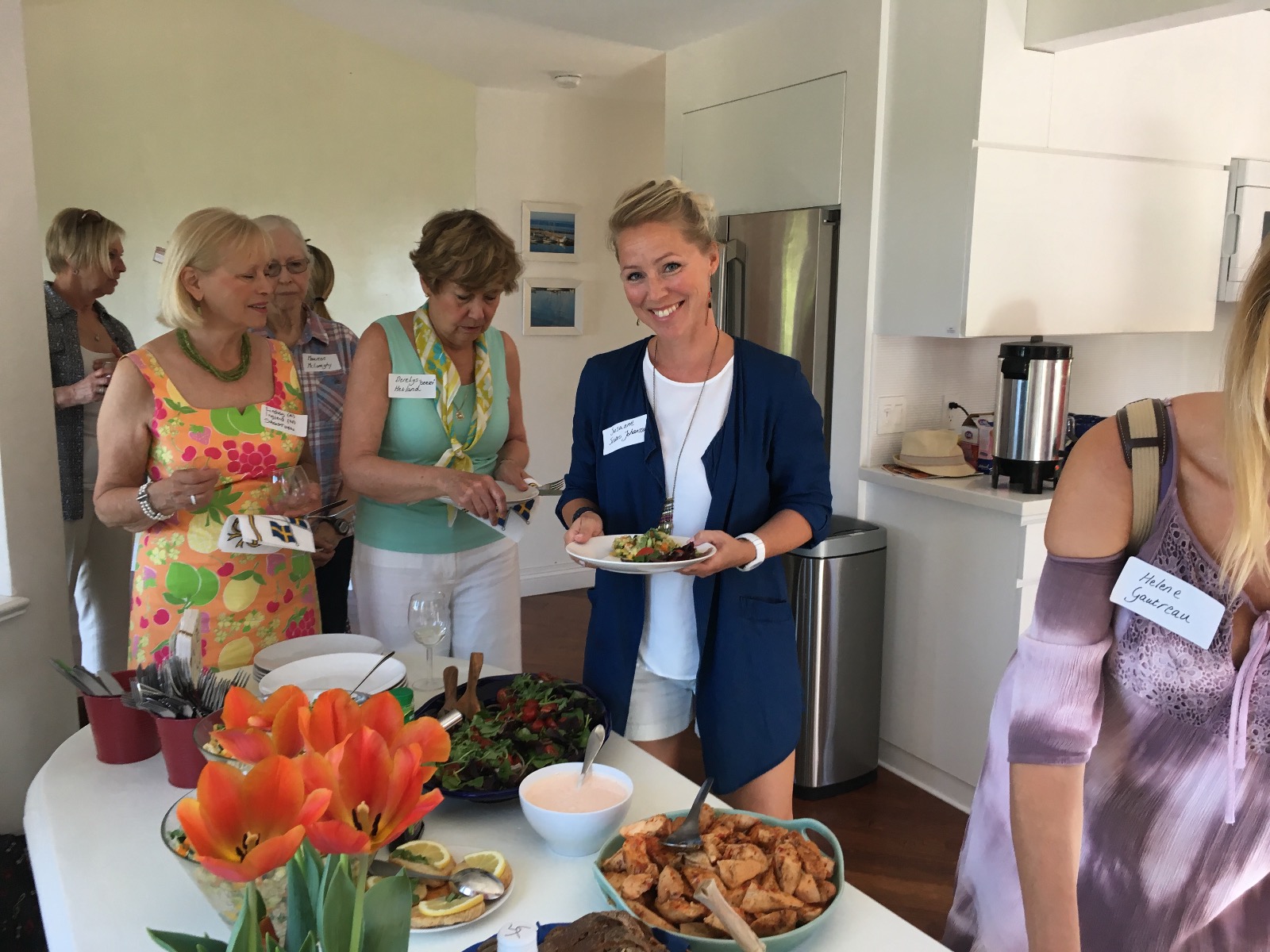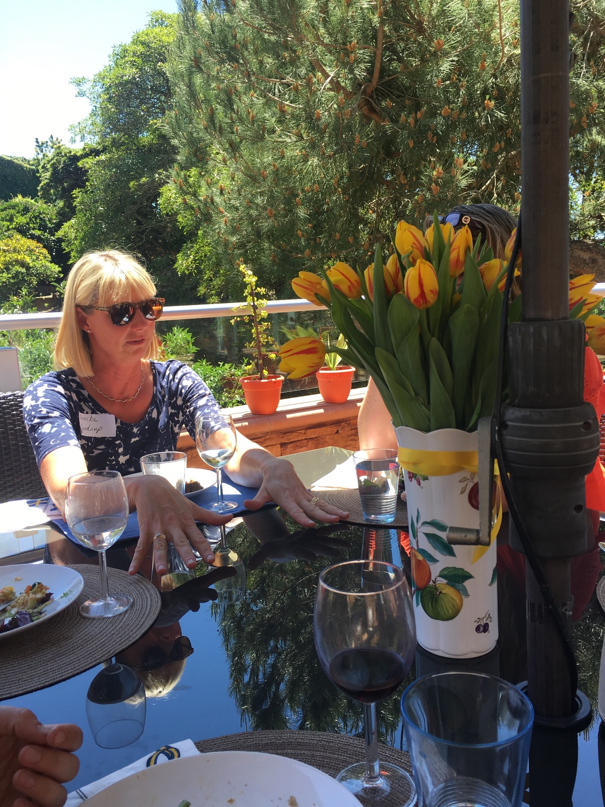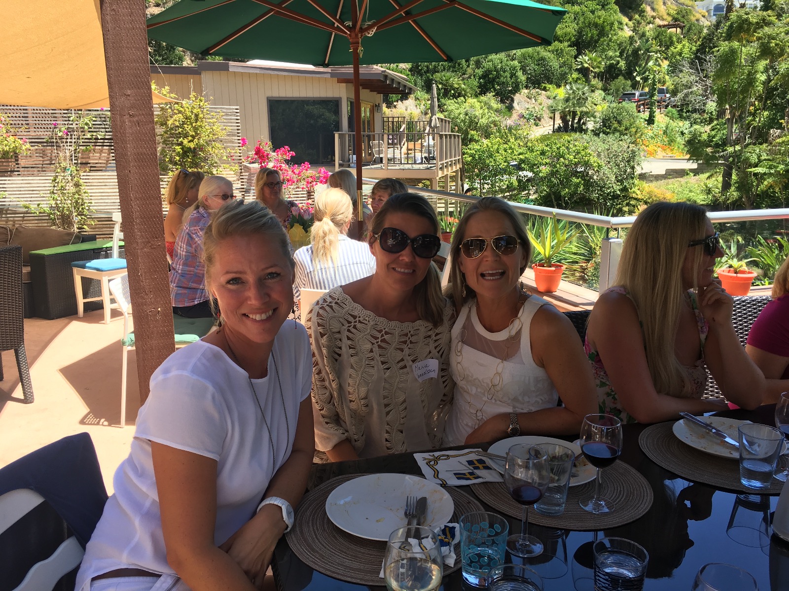 I slutet av april gick vår lunch för nya medlemmar av stapeln i Laguna Beach. Detta årliga arrangemang är ett fantastiskt sätt att lära känna alla nya SWEOR och introducera dem för styrelsen och vad som händer i vår avdelning. I år lyckades vi pricka in vårens varmaste dag och det var sexton glada, sommarklädda kvinnor som dök upp och tillbringade några trevliga timmar under parasoller på en mycket varm terrass. Våra värdinnor Karin och Susanne hade som vanligt svängt ihop en fantastisk sommarbuffet, och efter maten inledde vår ordförande Annette med att berätta om SWEA OC. Sedan gick vi laget runt och alla fick berätta lite om sig själva och sin bakgrund. Det är spännande att höra om hur och varför alla har hamnat i Orange County och jag slås alltid av den framåtanda och energi som omger oss Sweor.